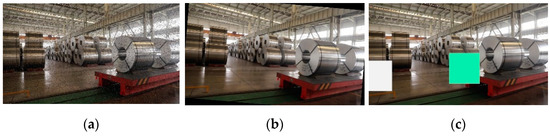 However, the above research is mainly limited to single-scale object detection in a simulated scene. There are still some problems associated with metal roll detection in warehouses, such as strong metal reflection, image noise, and so on, as shown in Figure 1. Furthermore, metal rolls in the warehouse are densely stacked and can block each other. Most importantly, the image pixel sizes of the front and rear metal rolls are very different; those for the rear metal rolls are less than one-fifteenth of those for the front metal rolls. Lastly, due to the small image pixel size of the rear metal rolls and serious occlusion, a large number of features are lost. Multi-scale metal rolls caused by the spatial change in this complex environment pose a significant challenge for intelligent visual detection.