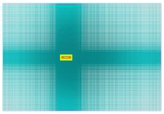 According to the selected 19 flat steel box girder sections, the CFD-based calculation models are established, respectively. As shown in Figure 5, for a steel box girder section with the width B, the calculation basin of the model is set as a rectangular area of 25B × 20B. The distance from the inlet boundary to the cross-section center is10B, and the distance from the outlet boundary to the cross-section center is 15B. In addition, the upper and lower boundaries are 10B from the cross-section center. Using the above parameters to set the flow field can try to avoid the separation vortex rolled up at the back of the object hitting the outer boundary and reflecting back, which affects the calculation accuracy. At the same time, it also makes the flow field parameter distribution near the outer boundary compatible with the assumed boundary conditions. In this way, the convergence of calculation can be well realized.