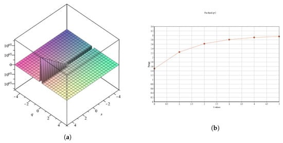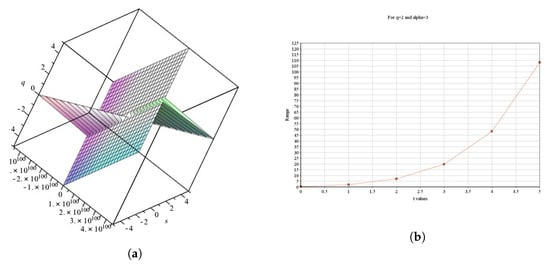 Consider Example 7, where q and are fixed and ; the solution is illustrated in Figure 1. Similarly, consider Example 8, where q, , and are constants and ; the solution is shown in Figure 2. Based on Figure 1 and Figure 2, we can easily predict that the solutions for the and operators will diverge to infinity.