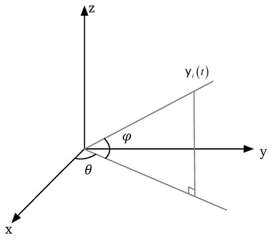 The MUSIC algorithm is that the observation space of signal processing can be divided into signal subspace and noise subspace, and then the spatial–spectral function is constructed. The estimated angle of arrival direction corresponds to the angle of the peak at which the maximum of the spectral function is obtained in the spatial–spectral domain. is expressed as