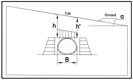 The method is proposed to determine the degree of unsymmetrical pressure in the tunnel under unsymmetrical topography, that is, the unsymmetrical coefficient of the load on both sides of a deeply buried tunnel is defined according to Equation (1) [13]: