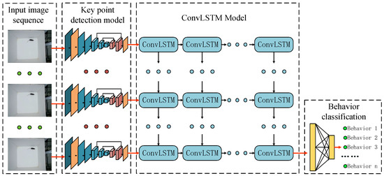 Therefore, based on deep learning technology, we propose a symmetrical model to identify the motion-related behavior of mice based on the fusion of a keypoint detection network and a convolutional long short-term memory network (ConvLSTM). The resulting tool could not only obtain the fine joint structure of mice, but could also use spatiotemporal information about the mice’s posture to identify their behavior. It provides a new method for behavior recognition of experimental animals.