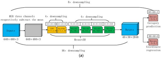 where is the category label, is the real coordinate offset, is the predicted category probability, is the predicted coordinate offset, and is a hyperparameter used to judge whether a point is a singular data point. When the predicted deviation is less than , the mean square error (MSE) is adopted; when the predicted error is greater than , the linear error is adopted to prevent oversensitivity to outliers.