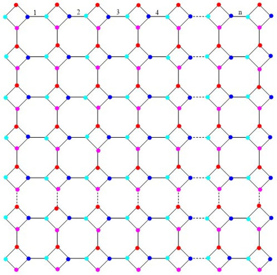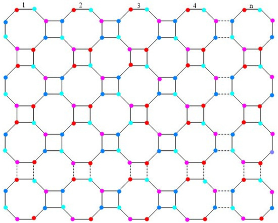 A is a left atomic configuration of CNS Thus, a two dimensional lattice is developed which entertain as squares and as octagon. Thus, the same is the graph of the structure shown in Figure 2 presenting the topology of CNS . We consider the arrangement as , where n is the length of the sheet.