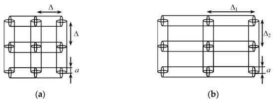 In the MoM, when wires are used to split the surfaces of the conductive parts in the structure into elementary platforms and approximate the current within them, a scalar current density function is used instead of a vector function, which greatly simplifies the solution. In this case, a preliminary choice of the number of the wires and their radius is required. The equal area rule is typically employed for constructing a square grid of wires when solving scattering problems [26,28,33,57,58]. However, the construction of such a grid is not always feasible, so it is necessary to use a different grid. Thus, we present a simple modification of the equal area rule for modeling structures using the wire-grid when solving the radiation problem.