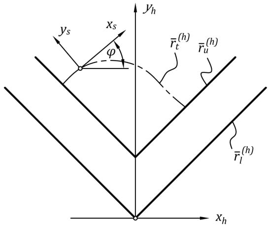 where i are the hallway’s parameters. Moreover, coordinate system s connected with the sofa moves along the trajectory defined by a parametric curve in the form of and rotates by , where is the parameter of the path of movement. In order to express the hallway’s boundaries in the coordinate system connected with the sofa, we may use Equation (3)