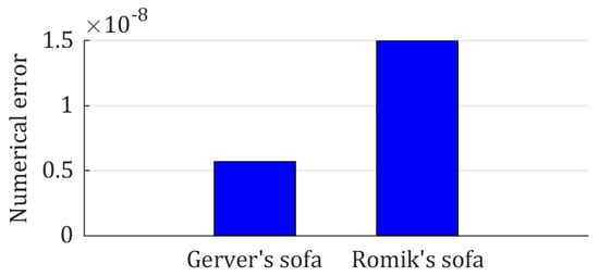 Based on the provided examples, it was concluded that the proposed method may be successfully used for generating sofas. The calculation accuracy defined as the difference between the analytically and numerically obtained areas is presented in Figure 6.