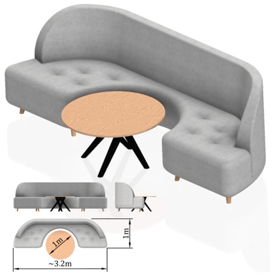 Nevertheless, the sofa with the maximum area is that proposed by Gerver; not only is it highly likely to be the optimal solution to the posed problem, but it is also possible to design a neat piece of furniture offering space for rather a large coffee table (Figure 7).