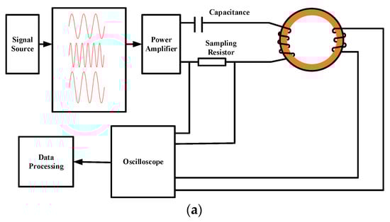 The magnetization curve of the material was measured by applying a high-frequency alternating magnetic field to the test ring through the signal source, as shown in Figure 12.
