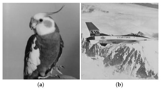 Reconstructed secret images. (a) Recovered image “Bird” (PSNR = ∞). (b) Recovered image “Jet(F16)” (PSNR = ∞).