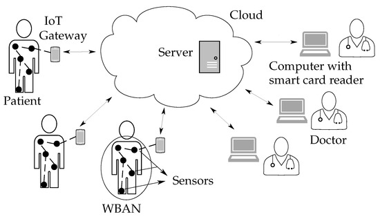 - The IoT gateway (identity G). It relays data between server S and the sensors of the patient’s WBAN.