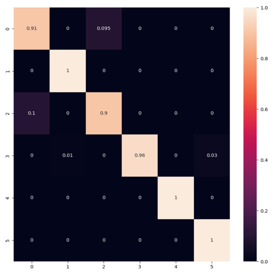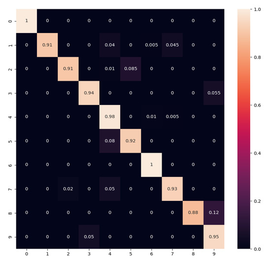 The confusion matrix of five-shot classification accuracy is shown in Figure 8. Many samples were correctly classified, and the average classification accuracy was 96.2%.