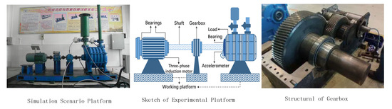 The petrochemical dataset(Guangdong Provincial Key Laboratory of Petrochemical Equipment Fault Diagnosis, Guangdong University of Petrochemical Technology, Maoming, China) [29,30] contains more noise and is related to industrial environments. We established a simulation platform to simulate the actual working environment of a petrochemical refinery and the power load of rotating machinery. The detailed information of the platform used for data collection from the machinery is provided in Figure 7. For more detailed information, please refer to the provided references.