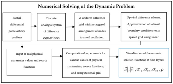 Flowchart of the numerical solving of the dynamic poroelasticity problem.