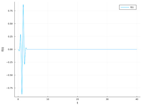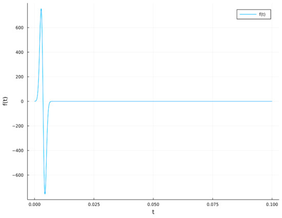 Since in problem (7)–(15) the boundary conditions are set only for three functions (15) on the left boundary at , for the remaining functions on the right boundary of a sufficiently large area, the conditions for the decay of functions at infinity are assumed. To obtain the numerical solution, we use an upwind difference scheme, which approximates the derivatives, starting from the right boundary (a rather large value is taken instead of infinity) along the -axis moving to the left to . To ensure the convergence of a numerical solution based on an explicit difference scheme, it is necessary to choose steps in time and space variables so that they satisfy the Courant–Friedrichs–Lewy (CFL) conditions, i.e., the following inequalities hold: