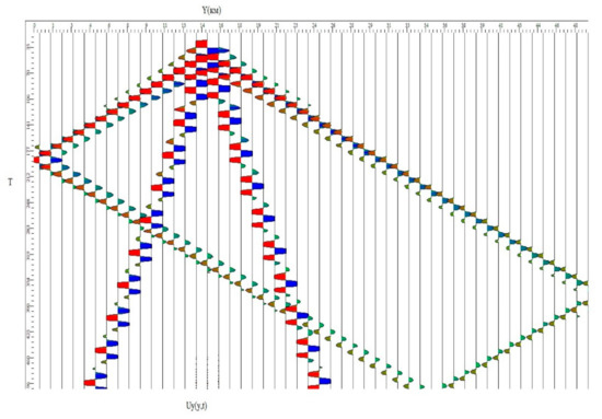 The seismograms of components and along the traces going through the source point are shown in Figure 7 and Figure 8, respectively.
