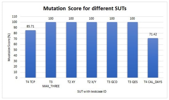 - The efficiency of the mutation testing can be assessed by utilizing a higher mutation score, which is defined by the following Equation (1) [].