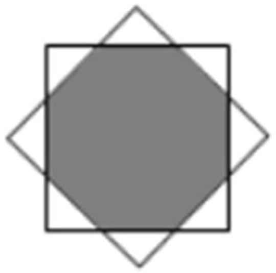 As users use mobile phones to shoot visual large-screen images with different shooting angles, there is often a problem with shooting template image rotation, which can lead to differences in orientation angles between template images and visual large-screen images. To solve this problem, this paper chose to use a square, octagonal template candidate box and calculated the region’s characteristics inside the square, octagonal template region box to effectively select the region and exclude the candidate region with less similarity. Different from the commonly used circular template and rectangular template, the square, octagonal template solves the problem of the circular template having difficulty in calculating the area features effectively. However, it is rotationally invariant, and solves the problem that while the rectangular template easily calculates the area features, it is not rotationally invariant, causing its results to be easily affected by the shooting angle. This results in the same part of the area features being unable to be included in a candidate box of the same size simultaneously. The problem is the same part of regional features cannot be included in a candidate frame of the same size at the same time, which eventually leads to a significant decrease in the accuracy of the results. Since each vertex of the inner tangent of a circle is on the edge of the circle, the square, octagonal template retains the rotation invariance of the circular template. The square octagonal candidate frame consists of a square with the same side length and a diamond (the square is rotated by 45 degrees) superimposed in the specific style shown in Figure 2 below, which retains the complete regional feature values and facilitates the calculation of the mean, variance, and gradient within the candidate frame [].