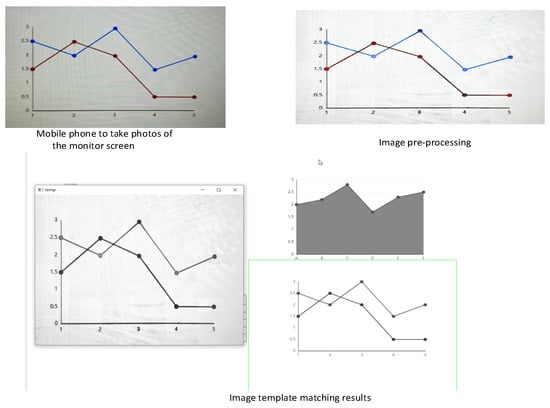 In this paper, the proposed positive octagonal K-value template matching method to establish the connection and interaction between the data visualization screen and the mobile phone was applied to manufacturing enterprises’ quality data integration and visualization analysis platform []. After photographing the chart image on the data visualization screen, the mobile phone and the data visualization screen established a connection through quick image matching. The mobile phone was operated to interact to assist the observation of the data visualization screen, as shown in Figure 6.