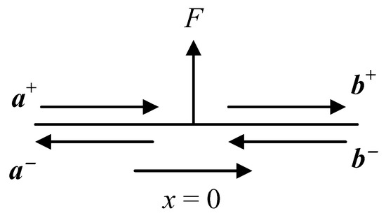 The waves and generated by the external force at x = 0 are drawn in Figure 2, and the conditions of equilibrium and continuity can be given as: