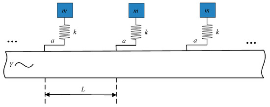 There has been growing interest in designing phononic crystals (PCs) and acoustics/elastic metamaterials (AMs/EMs) [1,2,3], mainly because these periodic structures can be designed to prevent the propagation of flexural waves. Based on this characteristic, the periodic structures have been widely applied in vibration and acoustic equipment. Among them, the excellent damping effect of locally resonant (LR) beams makes it very promising in engineering applications [4,5,6], in which the resonator is a continuous Timoshenko or Euler beam coupled with one or several spring-mass structures. Increasingly more researchers have recently studied the propagation properties of the flexural waves in specific frequency bounds along the LR beams, known as band gaps.