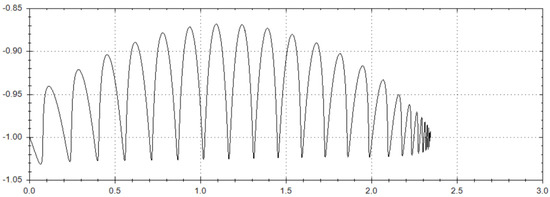 In addition, let us consider the additional case of initial values for system “Ceres-Sun” with respect to the numerical solutions illuminated by Figure 5, Figure 6, Figure 7 and Figure 8. We will obtain the help of Runge–Kutta fourth-order ansatz (step 0.001 starting from initial conditions): x0 = −1, = −0.53, y0 = 0.167, = −0.57.