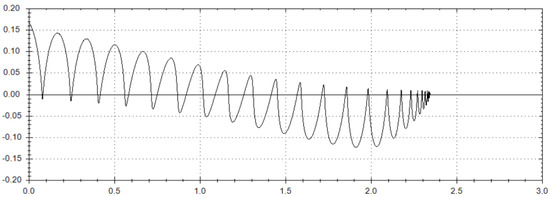 Furthermore, let us present hereby the schematic imaging for numerical solutions of Equation (1) (see Figure 1, Figure 2, Figure 3, Figure 4, Figure 5, Figure 6, Figure 7 and Figure 8). It is worthy to note that dynamical trends of numerical solutions and their quasi-periodicity (depending on the true anomaly f) are dependent on parameter h in (1), which stems from the deviation of the form of the projectile from an ellipsoid of rotation.