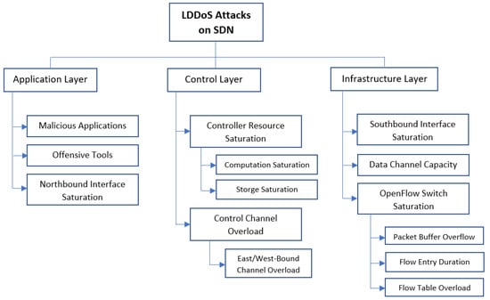 DDoS attacks may be categorized into three categories, according to the three-layer SDN architecture: