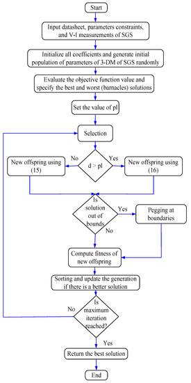Regarding (1) to (6), it is obvious that there exist nine Ups, viz. , which need to be identified since they are not prescribed in the datasheets. BMOA is employed to optimize the Ups for owning the fittest values inside their higher and lower limits. Optimization is performed for assurance of precise modeling of SGS aimed at simulation and analysis.