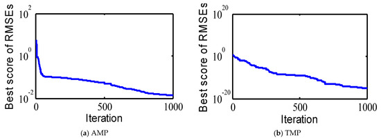 After employing BMOA, the electric currents are computed from the 3-DM; thereafter, RMSEs are calculated via (12), resulting in the smallest value of 9.22045 × 10−2 using all measured points (AMP), which is less than that resulted from other optimizers in the literature by 35.05% to 87.73%, and when TMP is used, the resultant RMSEs are 3.55604 × 10−18, which are less than that resulted from other optimizers in the literature by 99.91% to 99.99%, as written in Table 5. The benefit of utilizing BMOA for identifying the nine UPs of the 3-DM of SGSs is obvious since the minimum decrease in RMSEs is 35.05% using AMP and 99.91% using TMP. The fittest values of the UPs of the 3-DM are acquired after numerous independent runs of BMOA producing minimum FF because of the stochastic nature of these optimizers. The convergence tendency of the RMSEs diagram is displayed in Figure 4.