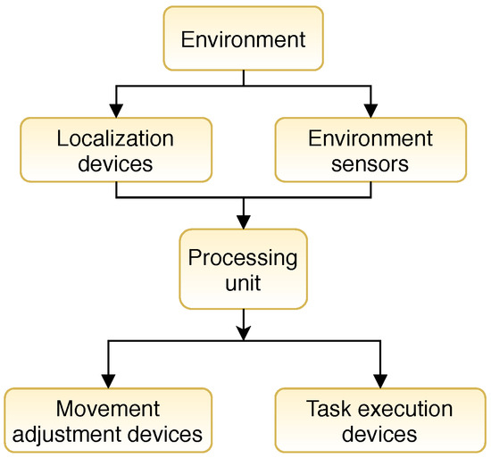 - Task execution devices may include any devices that are required to perform a specific task. They may vary depending on the user or application requirements, an example may be a capturing device designated to transport cargo.