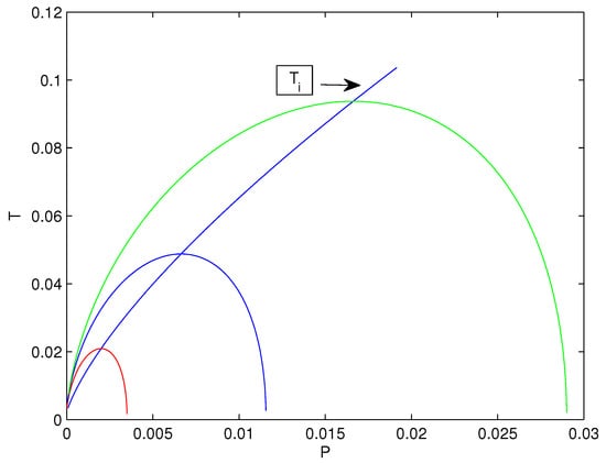 where . The discriminant of cubic Equation (38) is negative; therefore, Equation (38) possesses three real solutions—one is a positive physical solution and two are negative non-physical solutions: . The positive physical solution to Equation (38) is given by