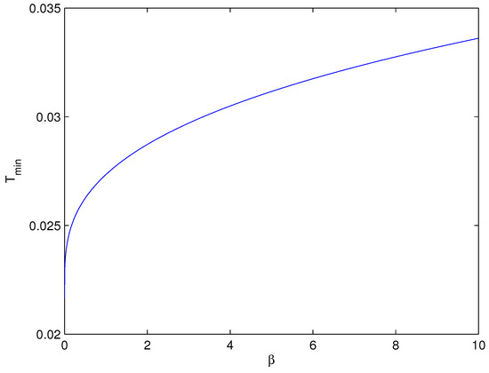 Making use of Equations (37) and (39), the plot of the minimum inversion temperature versus the coupling is depicted in Figure 8.