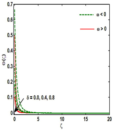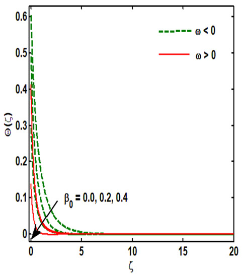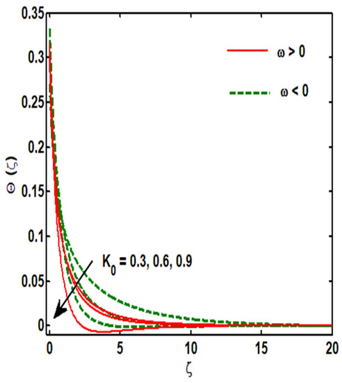 - The higher value of the unsteadiness parameter , the lower the temperature profile for the cases of both suction and injection.