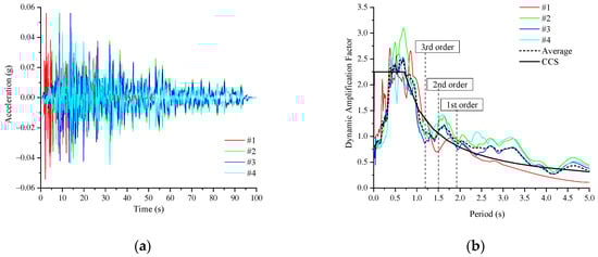 A comparison of the four inputs of earthquake ground-motion and their spectral features versus CCS spectra: (a) Earthquake ground-motion inputs; (b) Spectral features versus CCS spectra.