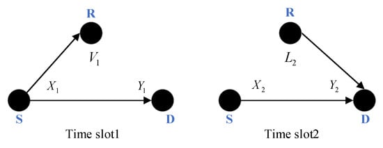 - Cover, T.; Gamal, A.E. Capacity theorems for the relay channel. IEEE Trans. Inf. Theory 1979, 25, 572–584. [Google Scholar] [CrossRef] [Green Version]