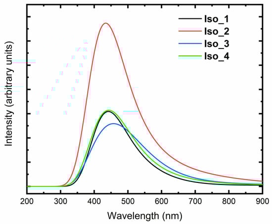 The optical properties of gold clusters attract a great deal of interest owing to their importance in both basic and applied research, and thus have been the subject of numerous studies using both experimental and computational approaches alike [45,46,47,48]. However, as far as we are aware, the experimental UV spectrum for Au12 is not available yet. Calculations performed for both 2D and 3D isomers using the time-dependent density-functional theory (TD-DFT) with the revTPSS functional and aug-cc-pVTZ-PP basis set show that the absorption spectrum of the 3D Iso_1 contains some particularly strong transitions between 435 and 465 nm (Figure 5), along with lower intensity peaks near 500 nm. The 2D Iso_2 exhibits a more symmetric spectrum with a sharper band at ~440 nm. Figure 4 also reveals that the planar isomer Iso_2 absorbs the light in the visible region much better than its 3D counterparts. Let us mention that TD-DFT calculations using the revTPSS functional tend to underestimate the S0 → S1 transition energy as compared to those including the long-range exchange effects. For the planar Iso_2, such a transition observed at 1.1 eV by the revTPSS is smaller than the corresponding value of 1.3 eV located previously with the LC-ωPBEh functional [48].