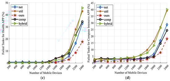 - VM utilization of the local MEC server (c1): Generally, it is better to offload tasks to the local MEC server in order not to consume mobile device resources. However, the MEC server’s VM utilization is capped, and offloading to MEC servers all the time can result in an excessive task failure rate. Therefore, the above three aspects need to be considered comprehensively to achieve a relative balance.