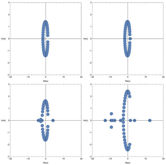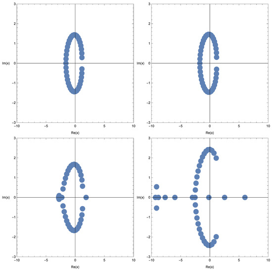 We plotted the real zeros of the q-Cosine -array-type polynomials for (Figure 3).