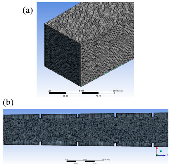 Meshing for (a) divergent duct and (b) fluid domain with ribs.