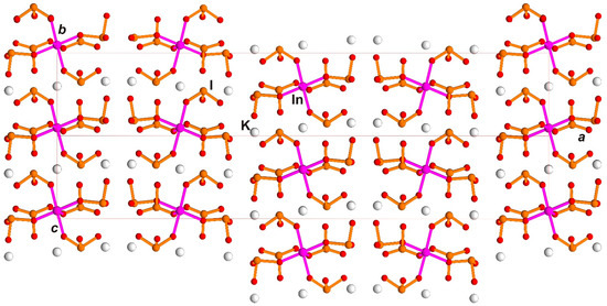 K3In(IO3)6 crystal structure in diagonal bc projection similar to Rb3Sc(IO3)6 projection on Figure 8c.