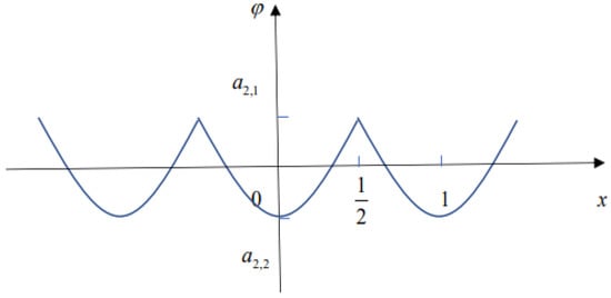 A function is said to be a solution to Equation (1) on with the period if the equation holds in the distribution sense. Clearly, is continuous on with a peak at . Therefore, we calculate that