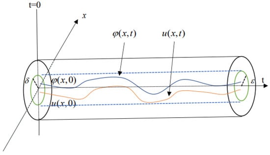Let be a solution of Equation (1) and assume that we are given an . Then, we choose a neighborhood of small enough that if . We can find a in Lemma 10 such that Equation (76) holds. Then, choosing a smaller if necessary, we may suppose