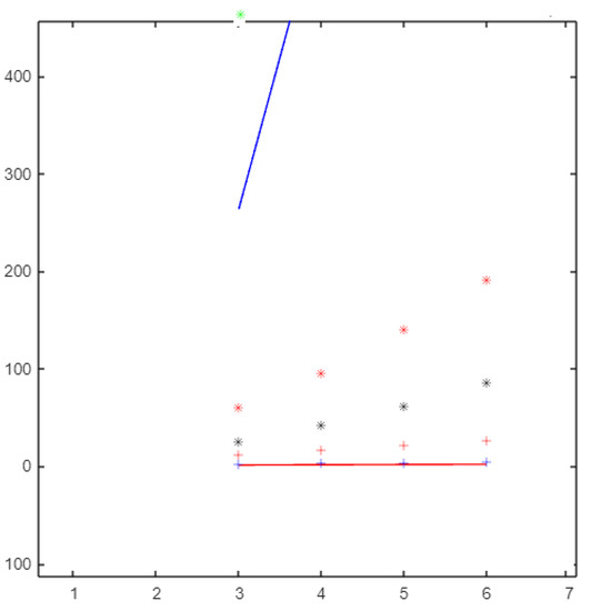 Figure 4b shows the molecular descriptors based on the neighborhood sum degree of the graph. Figure 4b shows that is the fastest curve-forming index. The index that produces values closest to zero is the mM index. If we order the indices from that with the largest value to that with the smallest value, the list would be as follows: , , , , ,, , and .