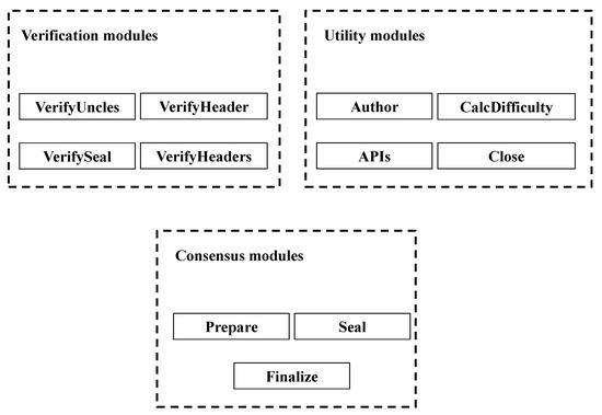 - The VerifyHeader module checks whether the header of the new mined block follows the rules of the consensus algorithm that is implemented. This module may check the validity of the crypto seal if the value of its parameter, seal, is set to true, which can also be done explicitly using the VerifySeal module. The module uses argument chain to read the content of the blockchain.