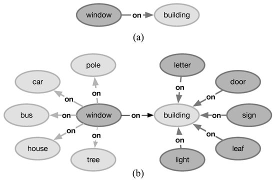 - Zellers, R.; Yatskar, M.; Thomson, S.; Choi, Y. Neural Motifs: Scene Graph Parsing with Global Context. In Proceedings of the 2018 IEEE/CVF Conference on Computer Vision and Pattern Recognition, Salt Lake City, UT, USA, 18–23 June 2018; pp. 5831–5840. [Google Scholar]