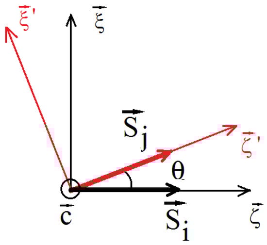 In order to calculate the SW spectrum for systems of non-collinear spin configurations, let us emphasize that the commutation relations between spin operators are established when the spin lies on its quantization z. In the non-collinear cases, each spin has its own quantization axis. It is therefore important to choose a quantization axis for each spin. We have to use the system of local coordinates defined as follows. In the Hamiltonian, the spins are coupled two by two. Consider a pair and . As seen above, in the general case these spins make an angle determined by the competing interactions in the systems. For quantum spins, in the course of calculation we need to use the commutation relations between the spin operators . As said above, these commutation relations are derived from the assumption that the spin lies on its quantization axis z. We show in Figure 3 the local coordinates assigned to spin and . We write