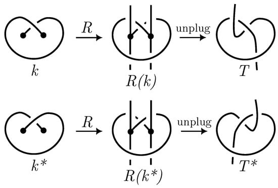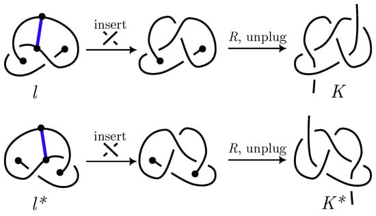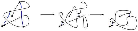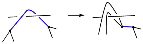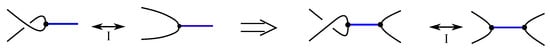 Figure 15. However, for unoriented bonded knotoid diagrams, the bond–rigid vertex correspondence is not one-to-one anymore, since vertical and horizontal bonds both are contracted to the same rigid vertex.