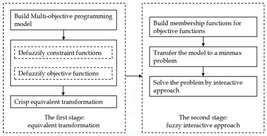 Today’s daily management work is not only faced with a single-objective decision optimization problem, but also involves multi-objective decision optimization problems. Enterprise management often encounters the problem of multi-objective decision making. When formulating production plans, enterprises must not only consider the total output value, but also consider profits, product quality and equipment utilization. Some objectives are often contradictory. For example, corporate profits may contradict environmental protection goals. How to take multi-objectives into account in an integrated manner and choose a reasonable plan is a very complicated issue. Multi-objective programming (MOP) has been applied in different areas widely for many years; there are a large number of application examples in economic planning [], supplier selection [], energy development [] and financial decision making [,]. In real life, when settling multi-objective problems, there are often several uncertainties required to be taken into account. Therefore, based on the multi-objective environment and the authoritative theoretical basis of possibility theory [], the fuzzy multi-objective programming (FMOP) has been widely researched. In accord with the way the decision maker (DM) specifies their preferences for the objectives, existing methods for solving MOP in various practical environments can be divided into two categories, namely non-interactive approaches and interactive approaches [].
