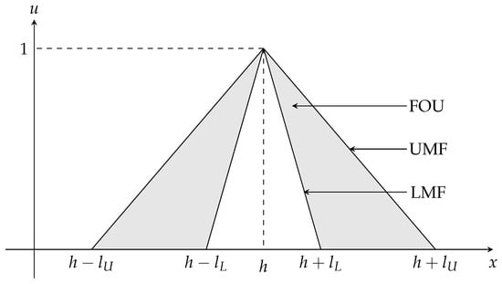 and can be denoted as , where and are spreads of the UMF and LMF, satisfying , and the peak of them, 1, is reached when x is equal to h.